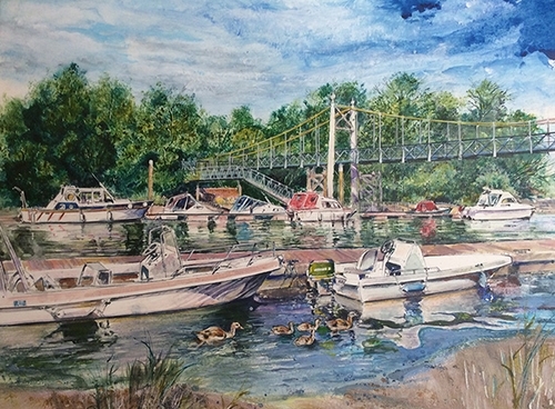 Teddington LockDown Footbridge (Wash/gouache, 300x390mm, unframed, £200)