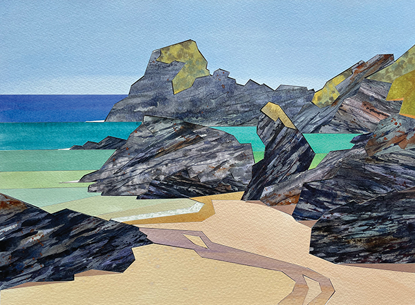 Godrevy Cove, Cornwall (Watercolour collage, 270x370mm, framed, £175)