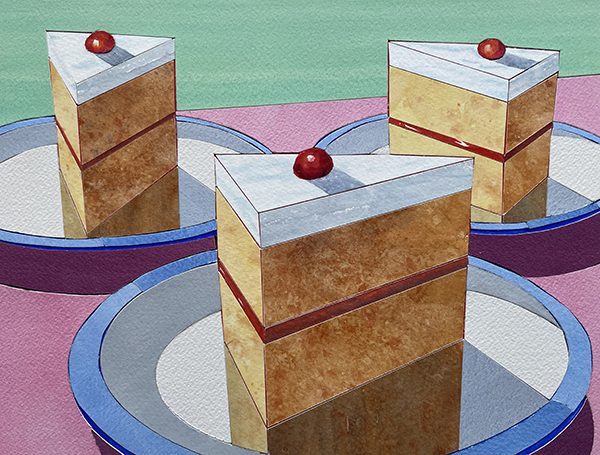 More Pieces of Cake - inspired by Wayne Thiebaud (Watercolour collage, 270x370mm, framed, £175)